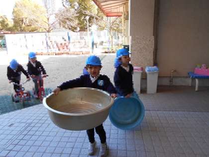 テラスに置いてあった大きなタライをもってきて、「これでつくろう!」「氷ができたらスケートできるな」と水を張っている子もいました。