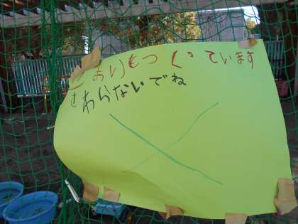 そして、氷製作中であることをみんなに伝えるために、張り紙もつくっていました。