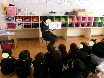 今日3歳児に生命の安全教育を行いました。絵本『ひとりじめ』のお話から、何でもひとりじめしているこぐまに「わるい!」と子どもたちがくちぐちに言いました。普段の子どもたちの様子から、順番に並ぶ時やおもちゃの片づけなど思いがぶつかる時に