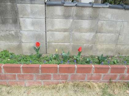 真田山幼稚園の園庭では、昨年度のはな組さんが植えてくれたチューリップやムスカリの花がきれいに咲き始めました。隣の児童公園側の桜の花も咲き始めました。