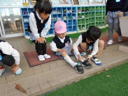 5歳児は、「大きい組さんありがとう」「優しいね」と、いろいろな先生から声をかけてもらって、誇らしげな顔をしています。
