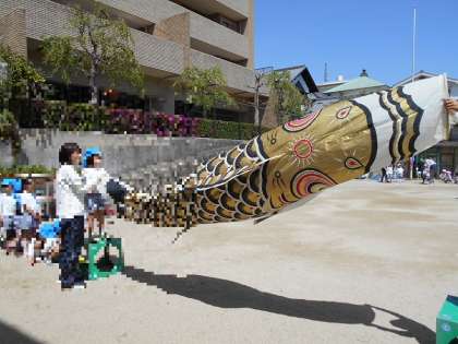 こいのぼりまでよーいドン! 公開日 2025/04/22 更新日 2025/04/22 幼稚園日記 五月晴れの良いお天気の下、走ることが大好きな5歳児がかけっこして遊びました。 その様子を見ていた3歳児と4歳児も続いて走って遊び始めました! 「こっちでこいのぼり持って待つねん!」と、 昨年度の5歳児がしていた姿を思い出し、5歳児がゴールでこいのぼりを持って待っていてくれます。 異年齢の友達の姿を見て、真似をしたり、関わったりすることを楽しみ始めています。 いいね(0)
