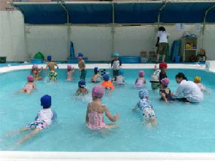 そのあと、プールのお約束を確認して、今年度初めてのプール遊びをしました。