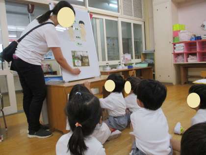 水遊びやプールが始まる前に、はな組に『プライベートパーツ』についての指導を行いました。もも組の時にもお話した身体の名前や働きについて再確認しその身体の中でも特別大事なところ『プライベートパーツ』があることを再度知らせました。プライベートパーツは、自分だけのもので、見るのも・触るのも自分だけであることを指導しました。着替えの途中に、トイレに行きたくなったらどうする?肌着がなくなりパンツのままうろうろ探しにいくのはプライベートを守れているかな?と子どもたちに問いかけ、着替えの時のお約束も伝えました。子どもたちが、自分の身体を自分で守っていけるよう、そして友達の身体も同じように大切にしていけるようになってほしいです。
