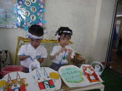夏祭り翌日、地域の子どもたちやもも組、はな組のお友達を招いて夏祭りをしました!