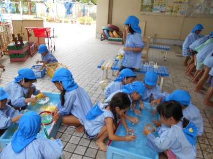 これまで色水でジュースをつくったり、泥遊びをしたりと水遊びを楽しんできました。
