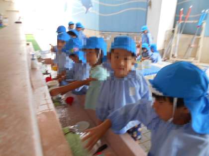 水遊びの遊具洗い(5歳児)