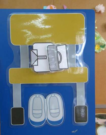 感染症対策として、間隔を空けて座れるようにリズム室で行っています。測定時は、脱いだ服をどこに置くのかなどを、掲示物を使って分かりやすく知らせています。