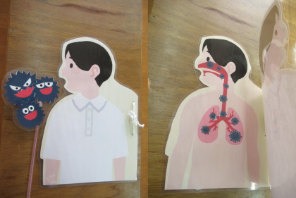 また、マスクを着けるときは、鼻と口をしっかりと覆う、手洗いの際はせっけんを使って洗うということを子どもたちと確認しました。