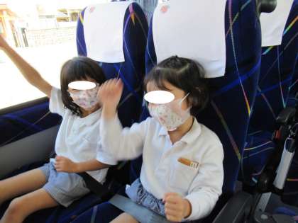 バスのなかでは、歌を歌ったり、手遊びをしたり、クイズをしたり、みんなで楽しく過ごしました。