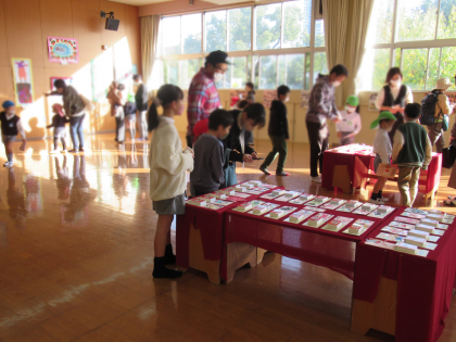 「これ私がかいたの」「〇〇つくってん」「ここがすごく難しかってん」と嬉しそうにお家の方に紹介していました。お家の方も「すごいかわいいね」「細かくがんばってつくったね」「大きく、元気にかけてるね」とたくさんほめてくださっていました。そして「これは、〇〇ちゃんがつくってん」「ここすごく工夫してるねん」と友達の作品も紹介してくれている子どももたくさんいました。