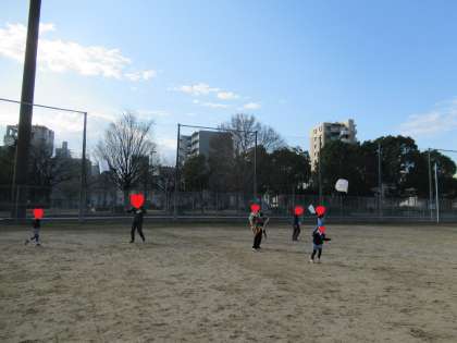 昨日は、真田山公園の広いグラウンドでたこあげをしました。