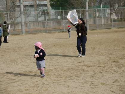保護者の方にもご参加いただき、みんなで準備体操やマラソンをしたり、たこをあげたりして遊びました。
