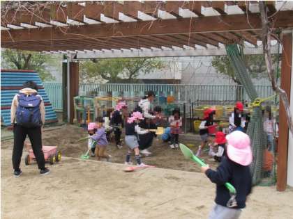 3月17日に、4月から幼稚園に入園する子どもたちが遊びに来る、新入園児一日入園を行いました。3歳児は自分達よりも小さいお友達が来ると知ると「一緒に遊んであげる!」と張り切っていました。4歳児はすっかりお兄さんお姉さんの顔でダンスを教えてあげたり、歌を歌ったり…。新しいお友達も頼もしいお兄さんお姉さんの姿を見て、幼稚園に来ることが楽しみになったことでしょう。