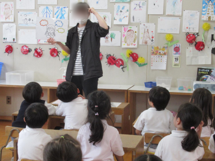 5月19日に5歳児そら組に咀嚼(かむこと)についての保健指導を行いました。