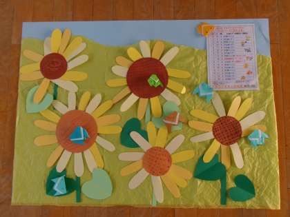 できあがった作品は、幼稚園の玄関横の掲示板に貼っていますので、通った時はご覧くださいね♪