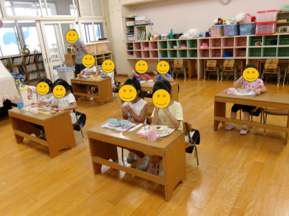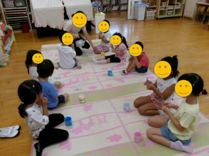 夏休みの預かり保育では、朝のおやつに冷たいゼリーを食べます♪