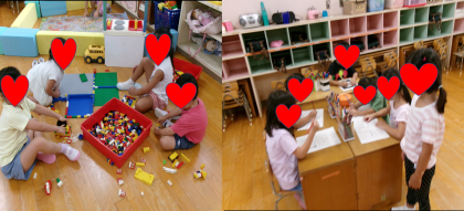 友だちと一緒に、ぬり絵やブロックをしたり、お弁当を食べたり、いろんな学年の子どもたちが交じりながら、みんなで仲良く過ごしています。