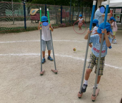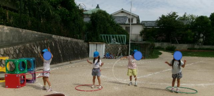 5歳児そら組では、毎朝☆チャレンジタイム☆という時間をもち、朝の用意が終わった子から、園庭で縄跳びや竹馬、げた、フラフープなど、それぞれが目標を決めて、取り組んでいます。すぐにできなくても、友達と励ましあいながら、毎日取り組む姿が見られます。10月には、幼稚園最後の運動会が待っています。たくさんのお客さんの前で、「チャレンジタイムの成果を見てもらいたい!」と頑張っています。できる、できないではなく、目標に向かって根気よく取り組む姿が、子どもたちの成長につながると思います。がんばれ!そら組さん!!