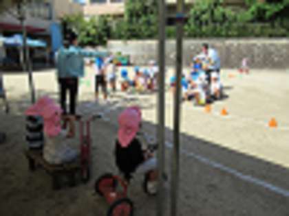 周りで遊んでいたもも組さんも「かっこいいな!」とじ〜っと見つめていました。