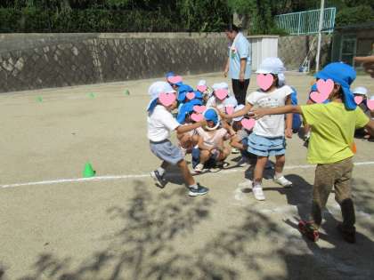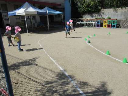 昨日は、リレーをして遊びました。みんな、自分のチームが勝つように、頑張って走りました。今年は、応援の規制もないので、園庭で子どもたちの「頑張れ〜!!」というにぎやかな声が響いています。