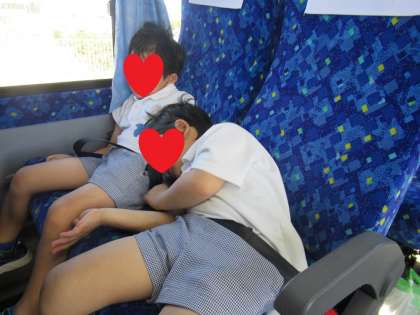いっぱい頑張って活動して疲れたのか、帰りのバスでは、すやすや眠っている子どもがたくさんいました。今日は園外だからこそできる経験をたくさんすることができ、先生や友達と一緒に出かけて楽しい時間を過ごすことができました。きっと疲れていると思うので、週末はゆっくり休んでくださいね♪
