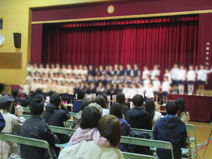 今回本園では、味原幼稚園・玉造幼稚園の3園で、味原小学校の講堂をお借りして、初めてたくさんのお客さんの前で歌を歌いました。