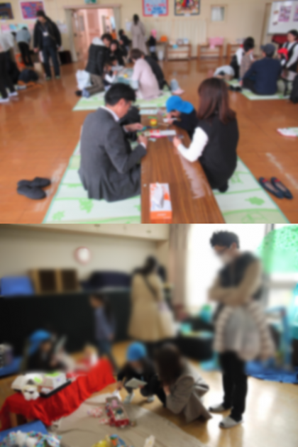 さらに、今年度はリズム室でおうちの方と一緒に、日めくりカレンダーの製作を行い、子どもが絵をかき、大人がその周りを飾り付けしました。ひとりひとり工夫をこらして真剣に制作していました。世界にひとつの素敵なカレンダー、おうちで飾ってくださいね!