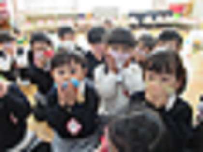 今日は避難訓練をしました。火災に備えて、ベルの音が鳴ったら、鼻と口をハンカチで覆って素早く非難することができました。誰も泣かずに先生の話をよく聞いて行動することができていました♪