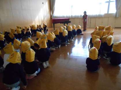 怖がって泣くこともなく、みんな落ち着いて避難訓練に参加できました。