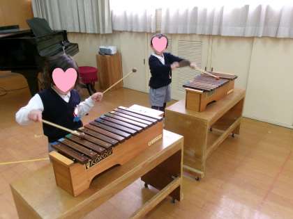 今日は、はな組さんが使っていたトライアングルやそら組さんが使っていた大太鼓や小太鼓、木琴や鉄琴などの楽器をかりて遊びました。