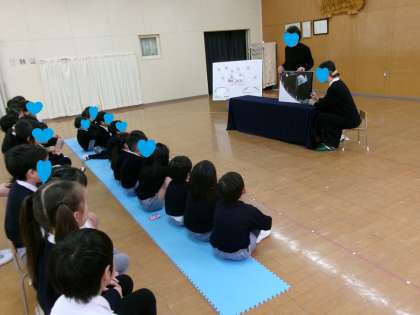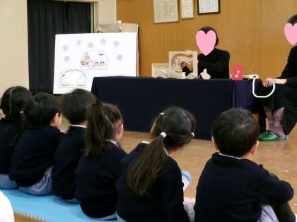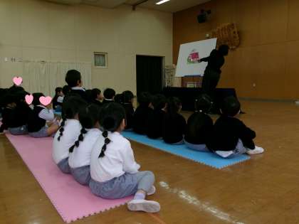 大型絵本やパネルシアター、おはなし組木など幼稚園にはないような珍しい、今の季節に合った絵本のよみきかせもしてくださり、みんなとても楽しそうな表情をしていました。