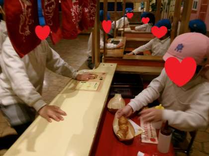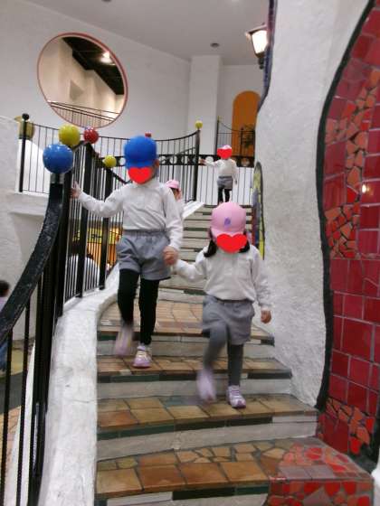 館内での自由遊びの中でも、もも組さんが困っていると自然とそら組さんが声をかけて手をつないでくれたり、お店屋さんのやり取りをしたりして遊んだり、他園の友達とも自然と関わって遊ぶ姿が見られ、様々な人との関わりを楽しんでいました。