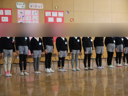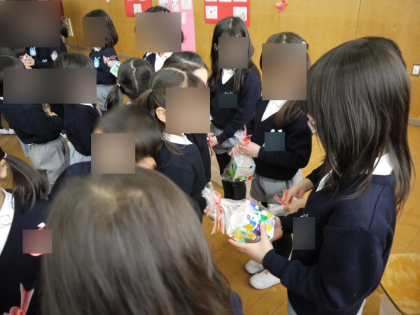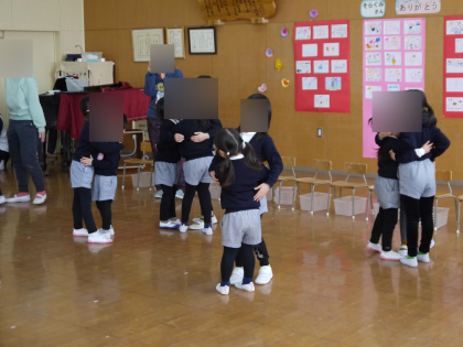 お別れ会をしました 公開日 2024/03/07 更新日 2024/03/07 お知らせ 今日は、もうすぐ修了を迎えるそらぐみさんとのお別れ会をしました。はなぐみとももぐみがそらぐみと一緒にふれあい遊びをしたり、そらぐみさんから素敵な歌のお礼をもらったりしました。そして、はなぐみは鉛筆立てを、ももぐみは写真飾りをプレゼントしました。今日までに一生懸命つくって準備していた子どもたちは、「今までありがとう」とお礼を伝えて贈りました。そらぐみさんは「ありがとう」と嬉しそうな表情でした。 いいね(0)