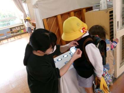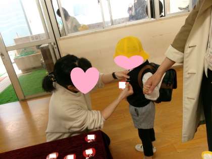 ひとつ大きいクラスの色の名札をつけてもらうと、「やった〜!はな組の名札や!」「今日から1番大きいそら組さんになったよ♪」と嬉しそうにお話しする姿も見られました。