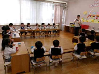 今日からお弁当も始まりました。新しく来てくださった養護教諭の先生が、歯の模型を使って歯磨き指導をしてくださいました。