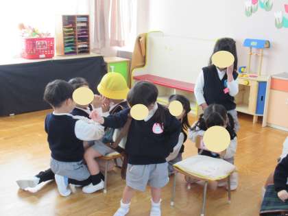 お手伝い 公開日 2024/04/11 更新日 2024/04/11 幼稚園日記 今日は、もも組さんにとって初めての幼稚園生活です。そら組さんがもも組さんのお手伝いをしてくれました。そら組さんは、緊張しながらも優しく教えてくれていました。 こうして、お兄さん・お姉さんになって、役に立つ喜びを感じていることと思います。 いいね(0)