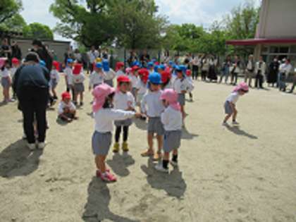今日は、PTA選挙総会と保育参観がありました。園庭では、好きな遊びをしたり、こいのぼりが上がる様子を歌を歌いながら見たり、異年齢で関わって体操やなかよし遊びをしたりする様子を見ていただきました。