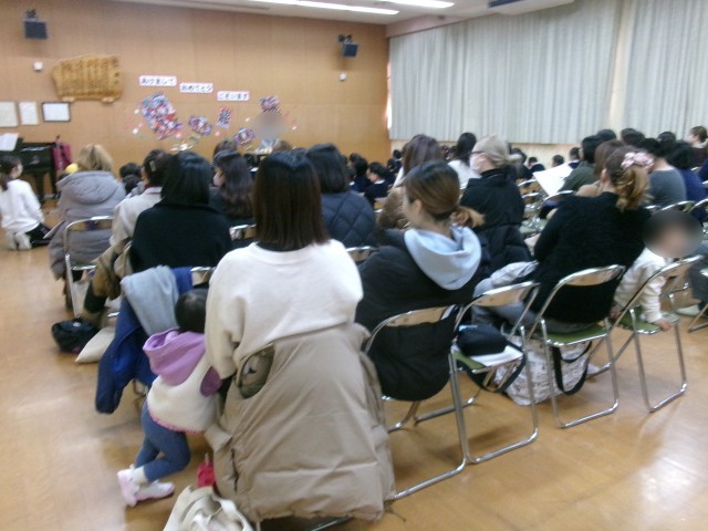 園長先生のお話を聞いたり、2学期の子どもたちの成長をパワーポイントを見たり、『もちつき』の歌を歌ったりしました。
