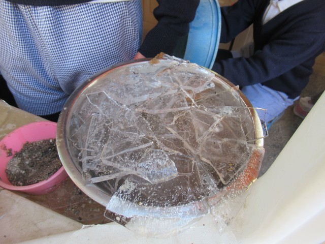 「お日様にあたったからかなあ」「冷凍庫にいれといたらよかったね」「また氷ができるかな」と、友達同士でつぶやき合っていました。