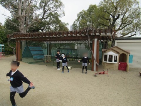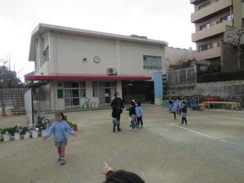 「うわあ!」「雪!」と、戸外に走り出て、手をかざしたり、頭に降ってきた雪を見合いっこしたりして大喜びしていました。