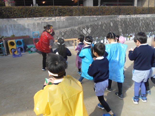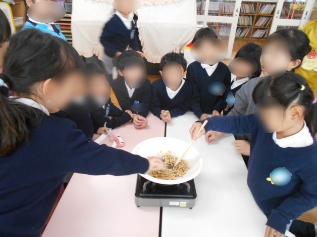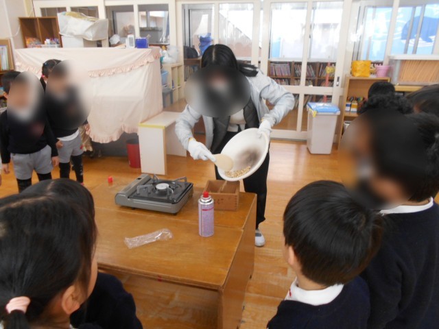 節分遊び 公開日 2026/02/03 更新日 2026/02/03 幼稚園日記 焙烙で豆を煎り、鬼の苦手なにおいでいっぱいにして準備をしました。心の中にいる鬼を追い出せるように、「鬼は外!」「福は内!」とかけ声をしながら豆をまきました。 +1 いいね(5)