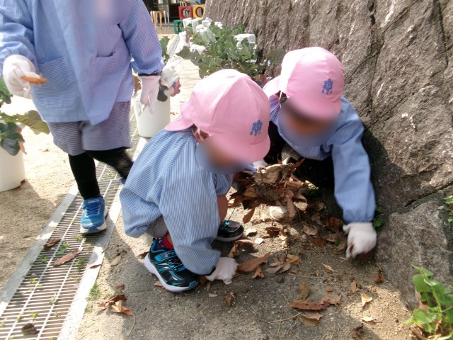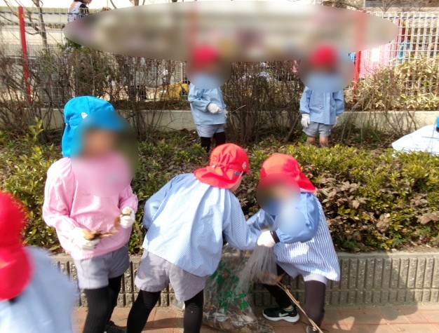 クリーンアップ作戦を行いました 公開日 2026/02/16 更新日 2026/02/16 幼稚園日記 ももぐみ(3歳児)は園庭を、はなぐみ(4歳児)とそらぐみ(5歳児)は隣の公園を掃除しました。軍手をはめて、「こんなゴミが落ちてた」「この枝は危ないよね」と話しながら落ち葉やゴミを拾いました。いつも遊んでいる場所がきれいになったことを喜ぶ姿も見られました。 +2 いいね(0)