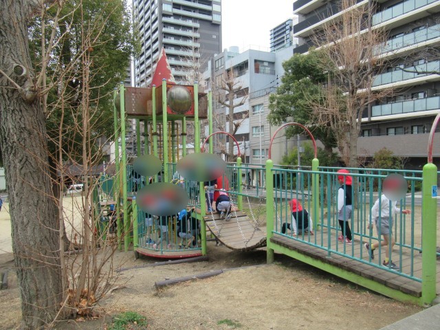 東高津公園へ散歩に行きました。今年度みんなと一緒に出掛ける最後の散歩でした。異年齢で手をつないで歩いたり、遊具で遊んだりなどして、とても楽しい時間を過ごしました。