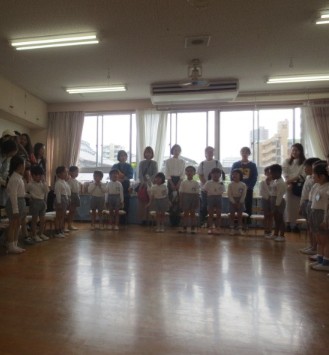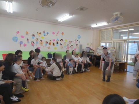 保育室では、歌を歌ったり、保護者の方と一緒に触れあって遊んだりしました。