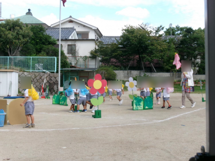 5歳児そら組は、真田山グラウンドで運動会に向けての活動をしている真田山小学校のお...