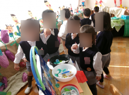 保護者の方に、楽しみながら一生懸命につくったり、かいたりした作品を見てもらいまし...