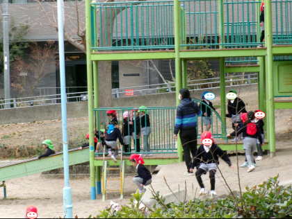 東高津公園に出掛けました♪ 5歳児にとっては幼稚園最後の遠足です。 大きな遊具...