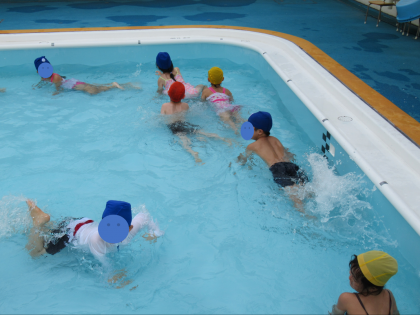 今日は5歳児やま組と4歳児はな組がプール開きです。 プールの中で遊ぶことを、心待...