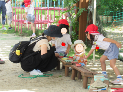 今日は、未就園のお友達が園庭に遊びに来てくれる「ふれあいデー」でした。今日の担...